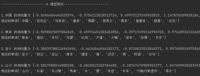 寻找距离最近的几个单词,看看训练得这个词向量矩阵得效果。